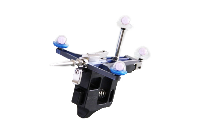 Die retroreflektierenden Marker kommen zum Einsatz, wenn die Navigationskamera ĂŒbernimmt: Mittels transparenter Haube geschĂŒtzte Reflexionsmarker fĂŒr prĂ€zise Orientierung im Raum.